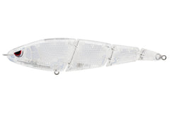 The Sashimmy Swimmer was engineered in collaboration with Elite Series pro angler Bryan New and boasts three joints with four hard plastic sections that make up the body. This third joint, which stands out from similar baits, produces the extra swimming action. The triple jointed design creates a distinct "S" swimming action when retrieved. It is designed for anglers targeting schooling fish, particularly on herring lakes, and boasts a long casting range with perfect swimming on rapid retrieves. It comes with #4 round bend, black nickel Gamakatsu trebles for superior hook penetration.